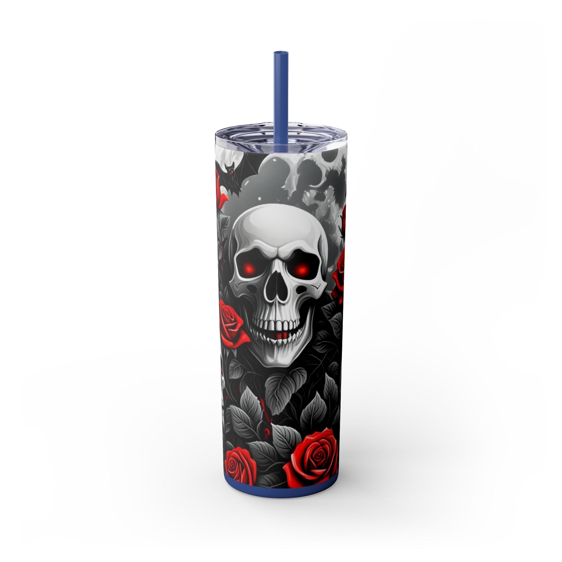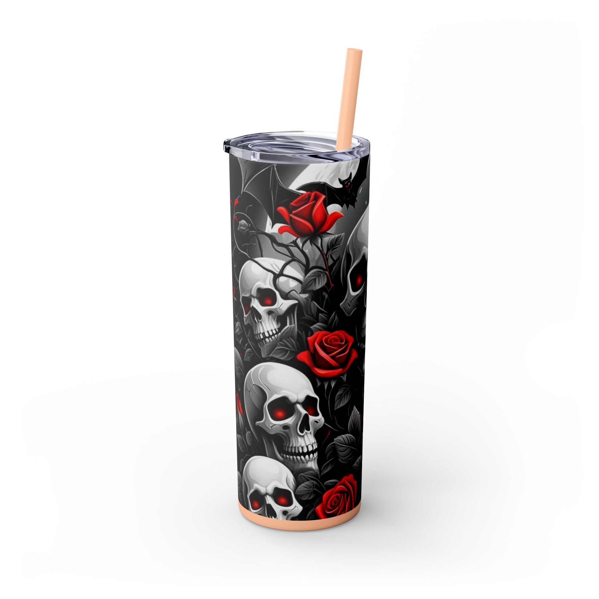 This Tumbler with Straw features a unique design with Halloween skulls and red roses, giving off a spooky yet stylish vibe. Perfect for Halloween parties, this tumbler will keep your drinks cold for up to 24 hours or hot for up to 12 hours. Made of stainless steel and plastic, it is non-toxic and BPA-free. A must-have for those who love Halloween and enjoy a touch of gothic style in their everyday life. Product features - Double-wall insulation for long-lasting temperature retention - Lid with color-matching straw for easy sipping - Vibrant colors with crisp printing techniques - 20oz size with tapered shape for easy handling - Available in matte or glossy finish for a personalized touch Care instructions - Hand wash only