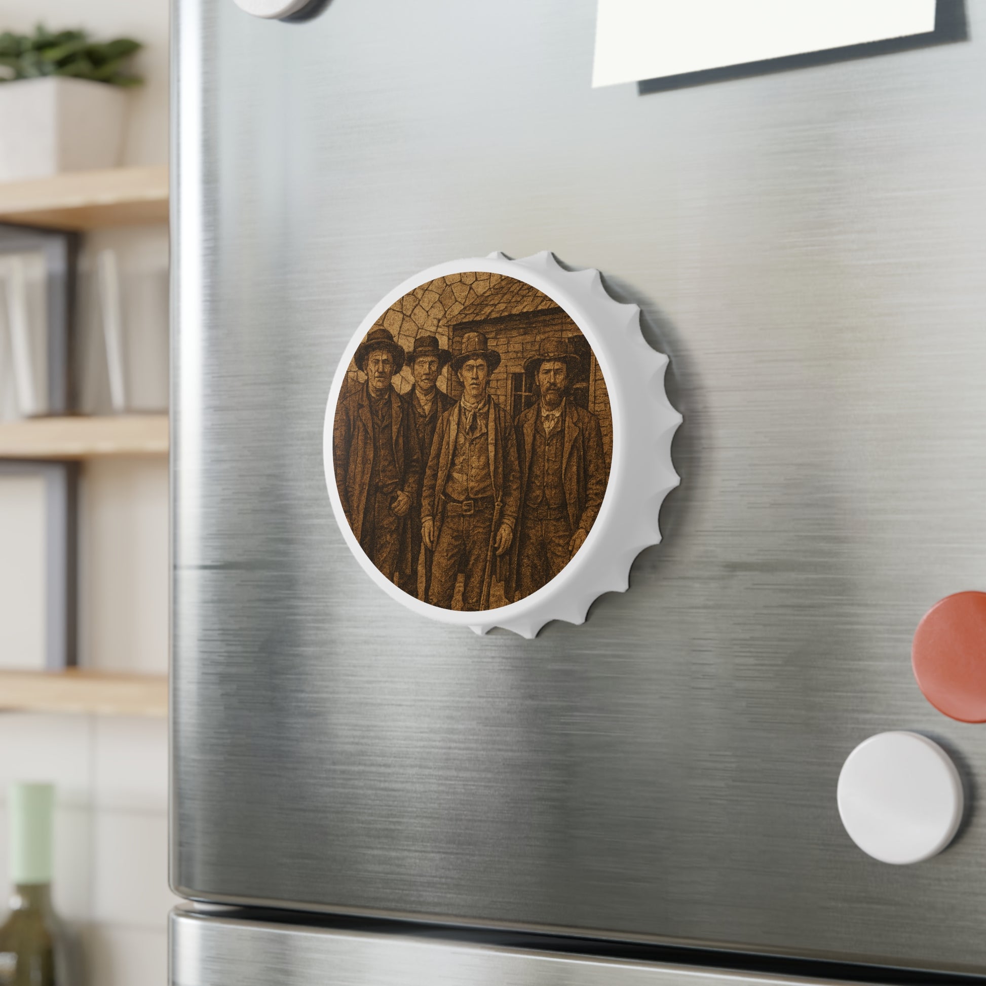 A fun and functional Bottle Opener featuring 'Billy the Kid' and his friends. This Bottle Opener provides a vibrant and colorful design while allowing you to easily open your favorite beverages. Perfect for adults looking to add a bit of personality to their kitchen or bar area. Great for gifting on birthdays, holidays, or housewarmings.