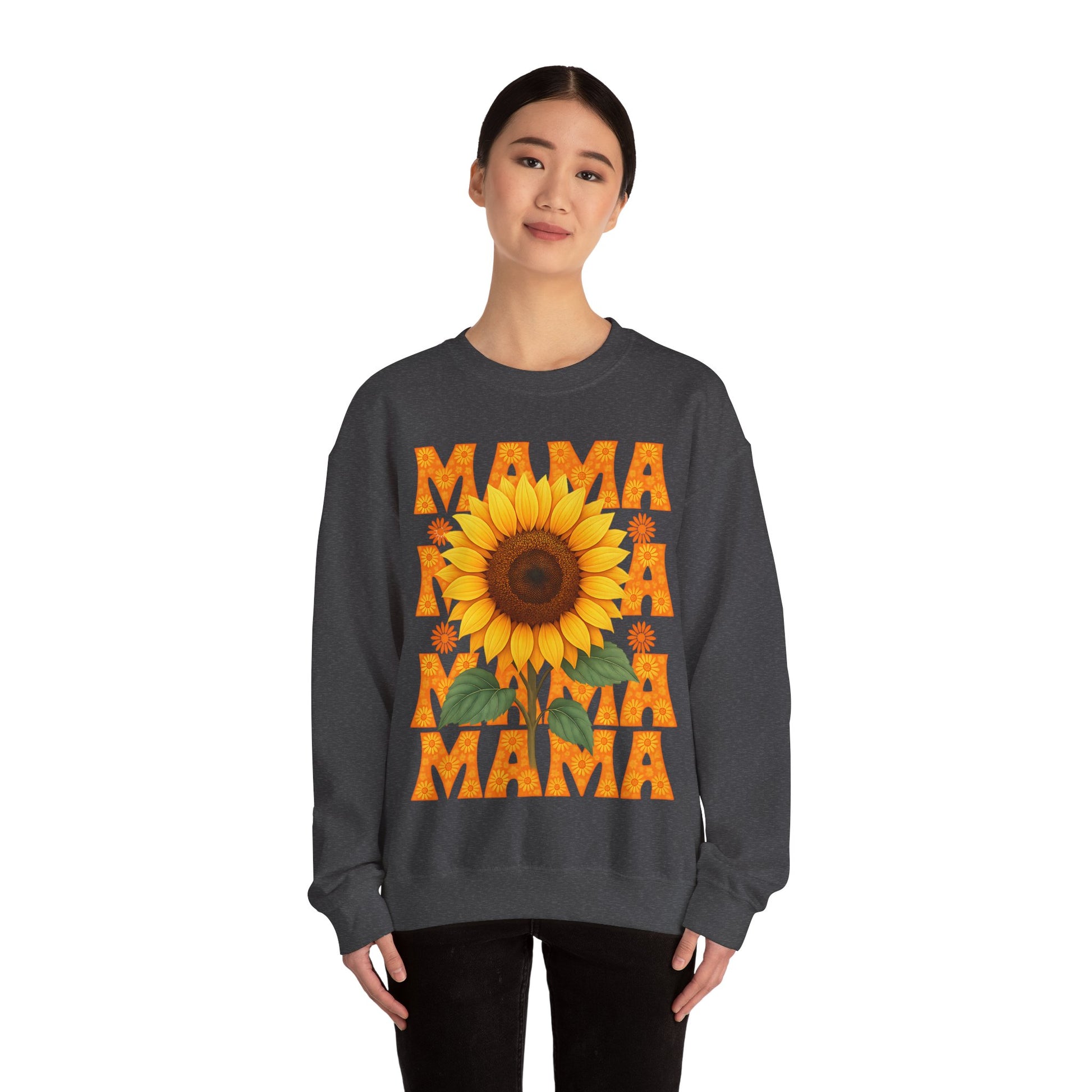 A cozy Mama sweatshirt featuring a sunflower design, perfect for a relaxed and casual look. This sweatshirt is ideal for moms who want to show off their style and comfort while running errands, attending outdoor events, or simply lounging at home. Suitable for Mother's Day, birthdays, or any casual occasion. Product features