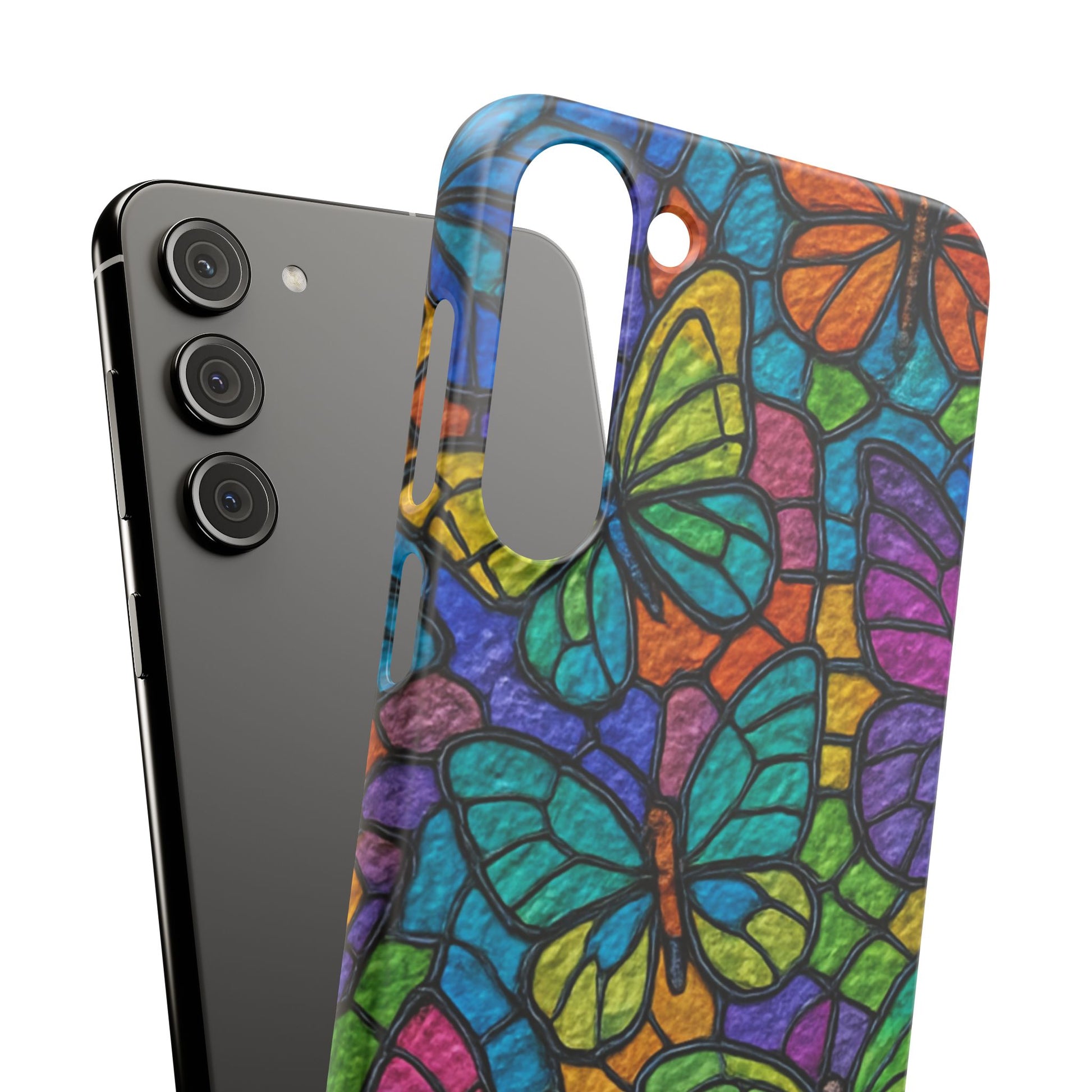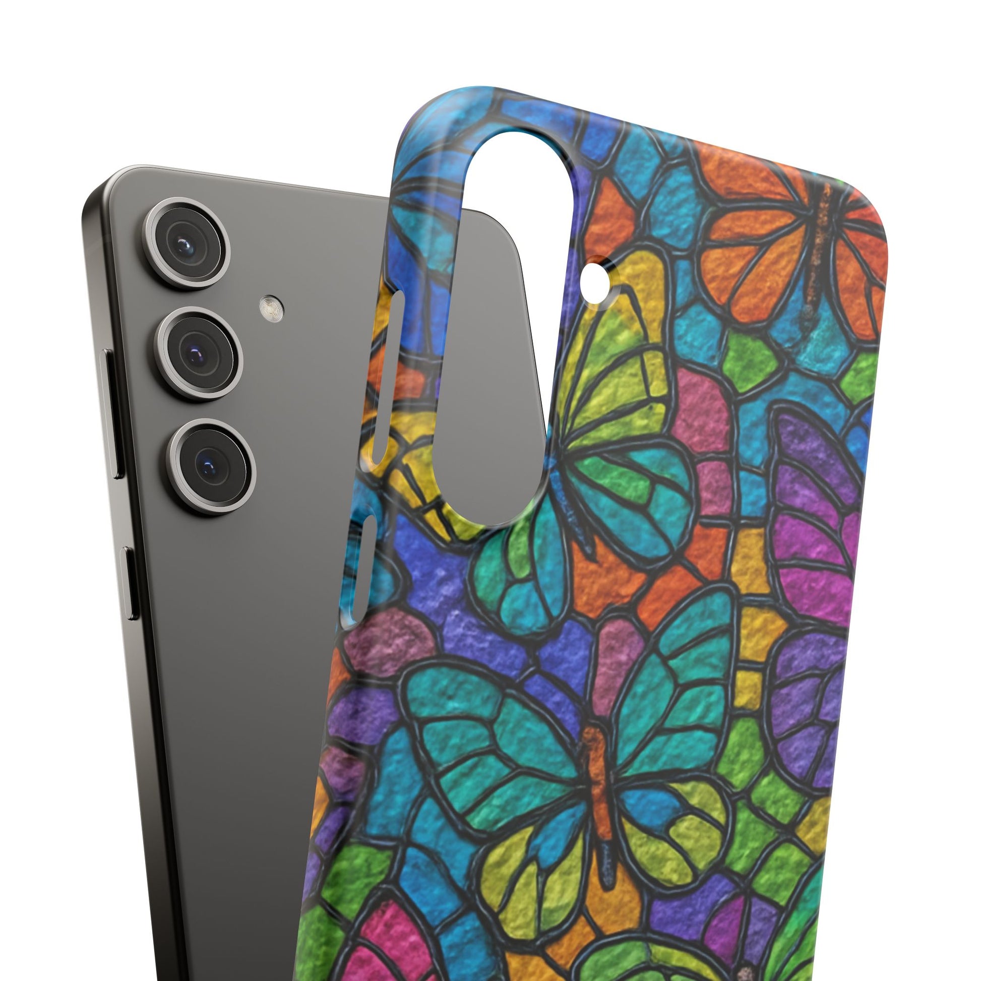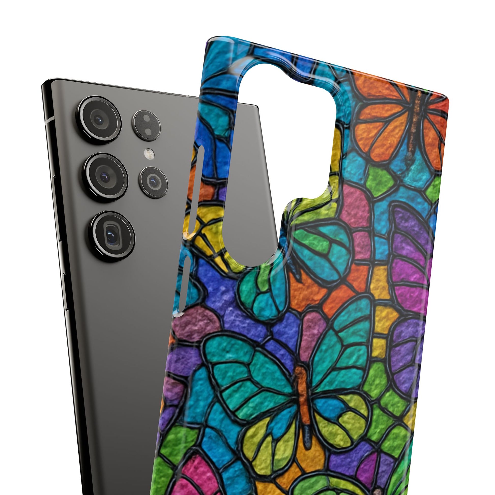Psychedelic Butterfly Mosaic Phone Case, Trippy Hippie Butterflies, Rainbow Stained-Glass Art Cover | Boho Festival Aesthetic Case