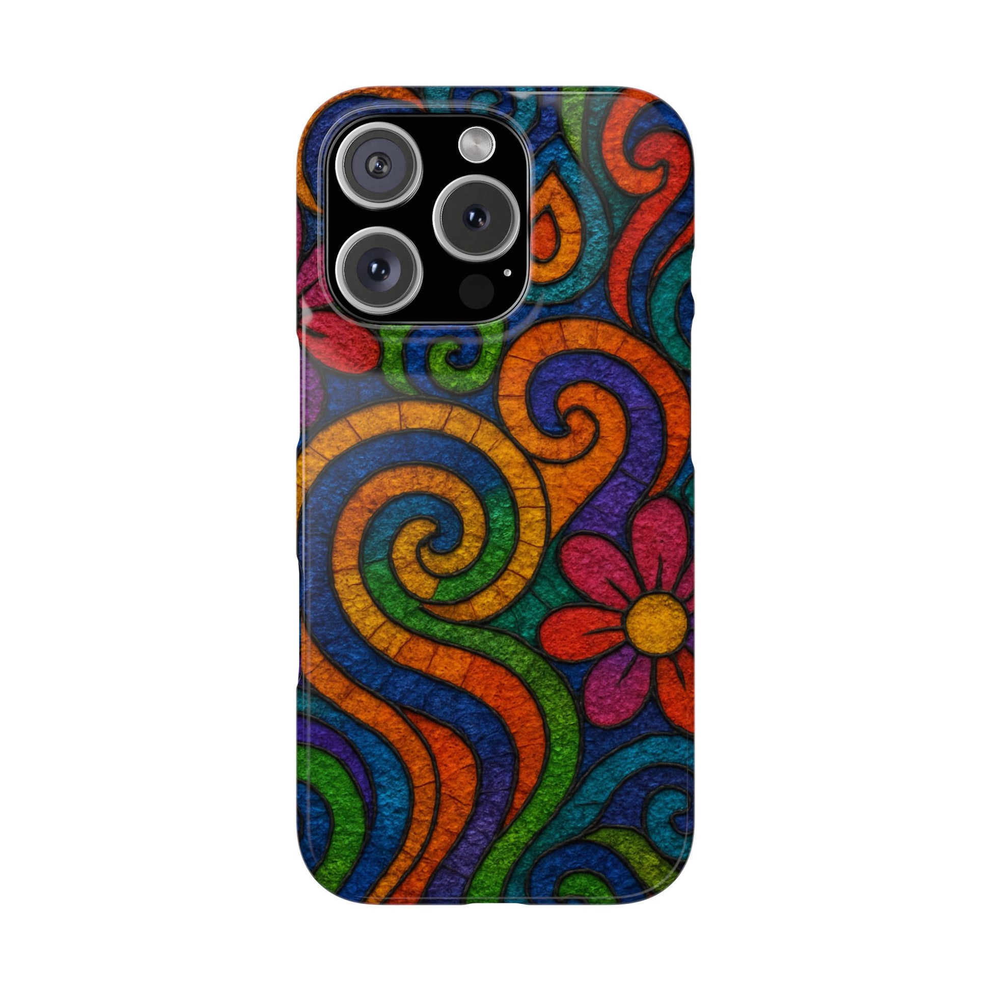 Bring vibrant retro energy everywhere you go with this psychedelic hippie phone case! Featuring an exotic trippy mosaic swirl design inspired by 60s–70s festival art, this case bursts with rainbow color, boho curves, and groovy flower-power vibes. Perfect for free-spirits, dreamers, and anyone who loves bold, colorful art with a retro soul. Product features - 3D wrap for full ink density transfer - UV protected for outdoor durability - Vibrant colors with latest printing techniques - Slim form and lightweight design - Clear, open ports for connectivity