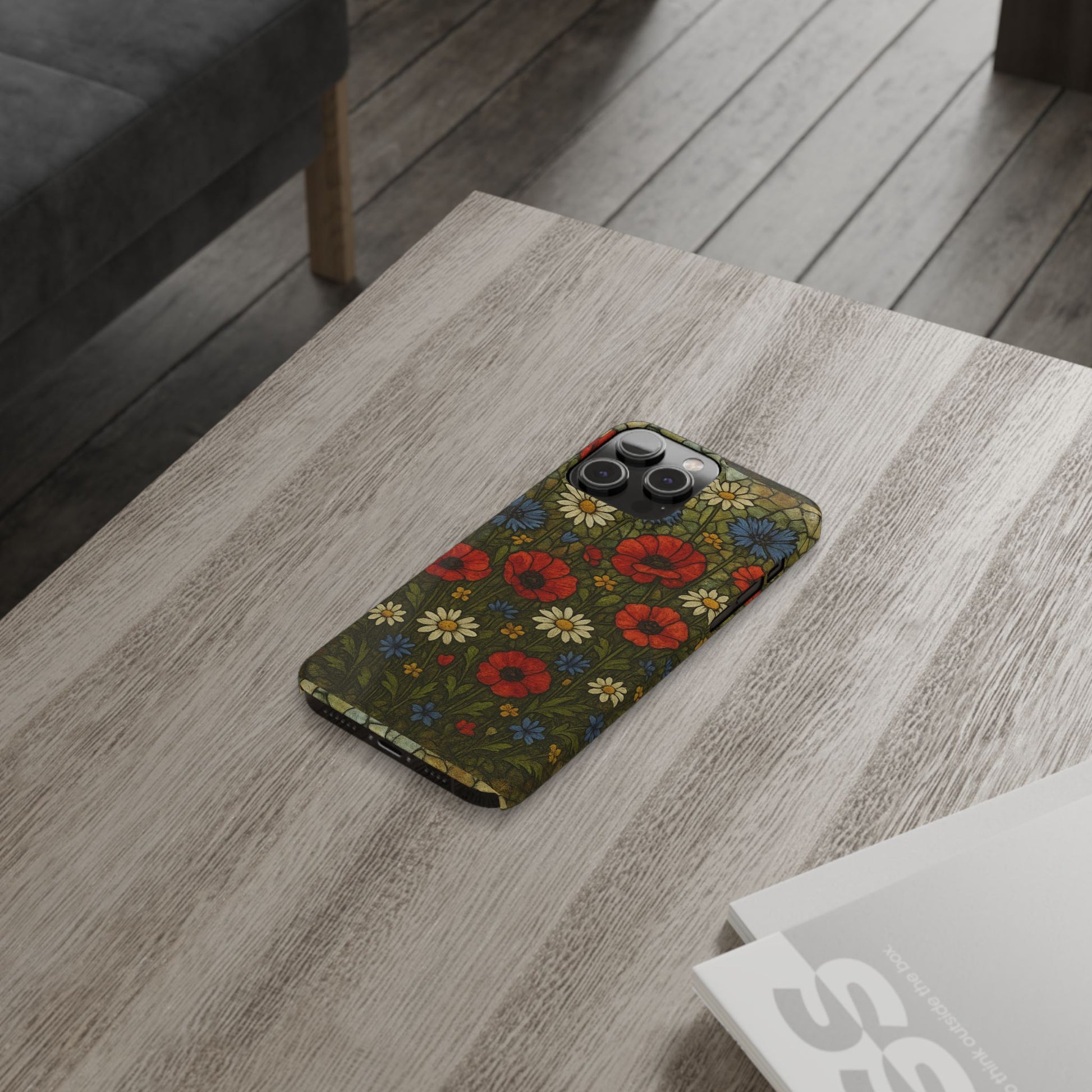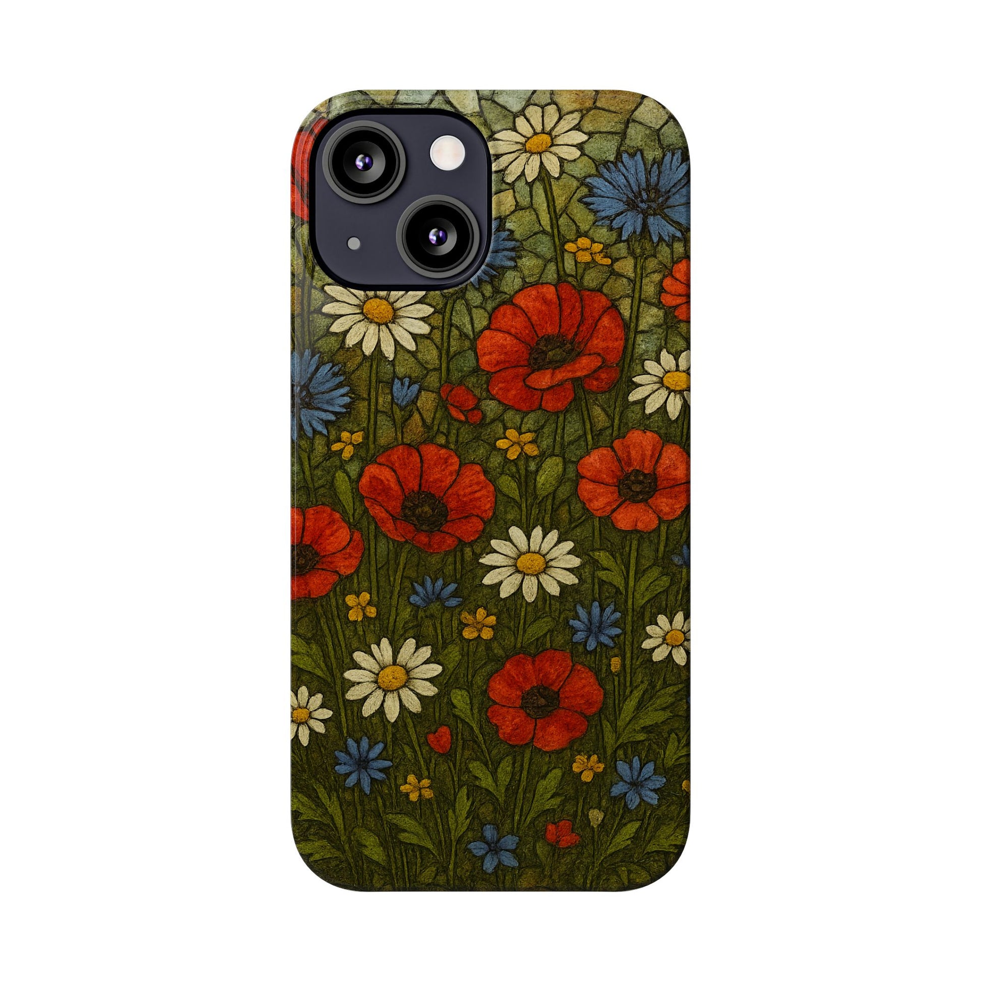 Bring timeless elegance and handcrafted beauty to your creations with this Wildflower Mosaic Floral Design. Each delicate flower looks as if it were pieced together from tiny, colorful glass and ceramic fragments. The pattern features daisies, poppies, and meadow blooms in radiant tones of red, white, and blue, all outlined with dark grout for a realistic mosaic texture.